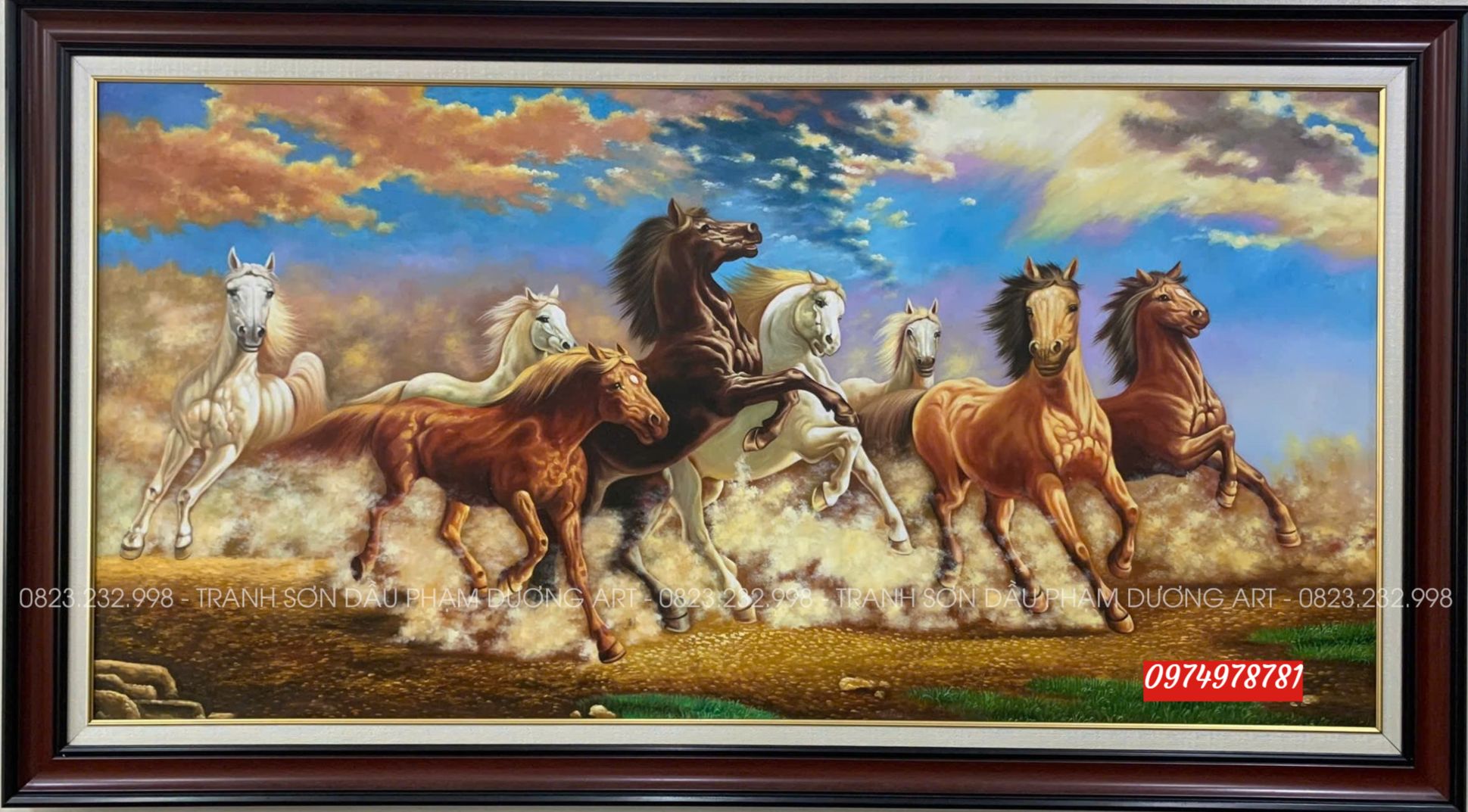 Tóm lại, tranh “Mã Đáo Thành Công” không chỉ là một tác phẩm nghệ thuật giàu tính thẩm mỹ, mà còn là biểu tượng của ý chí, niềm tin và khát vọng thành công. Treo bức tranh trong nhà, ta như được tiếp thêm năng lượng, cảm hứng và sự lạc quan để vững bước trên hành trình của riêng mình – hành trình đi đến thành công, như đàn ngựa tung vó giữa trời cao gió lộng.